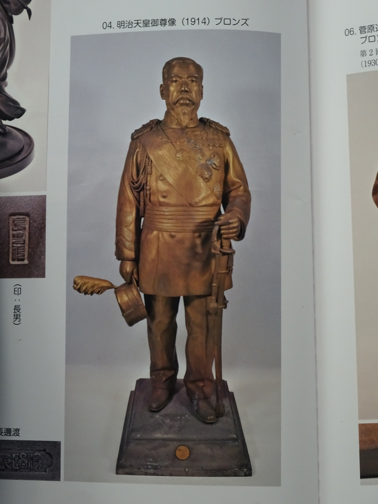 | 渡辺長男作 水牛と牧童 令和6年度秋季特別展図録から頂きました。 | 渡辺長男作 明治天皇御尊像令和6年度秋季特別展図録から 頂きました。 |